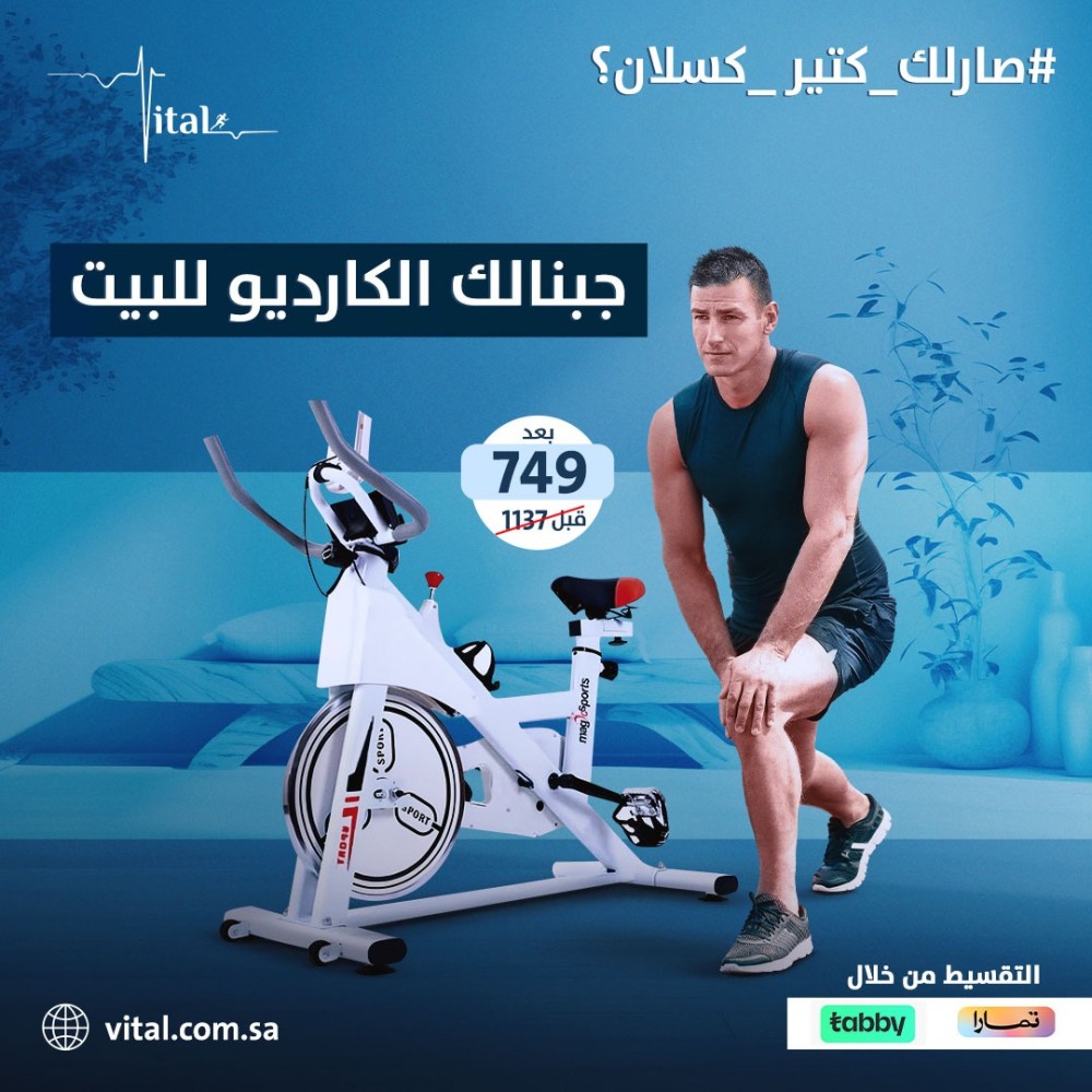 - الشاشات : 5شاشات (السرعة - المسافة - الزمن - السعرات الحرارية- نبضات القلب) .